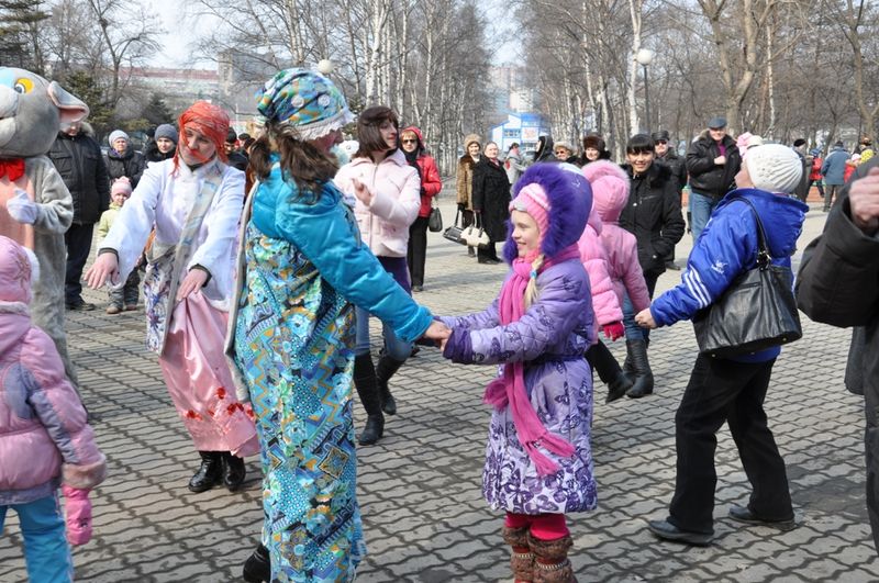 Масленичные гуляния прошли в Первореченском районе Владивостока Жители Первореченского района Владивостока проводили Масленицу в воскресенье, 6 марта. Тематическое мероприятие "Широкая Масленица" прошло на открытой концертной площадке Приморского краевого дома молодежи. Жители района смогли поучаствовать в концертно-развлекательной и конкурсно-игровой программе, попробовали чай с горячими блинами, а также померились силой и смекалкой.