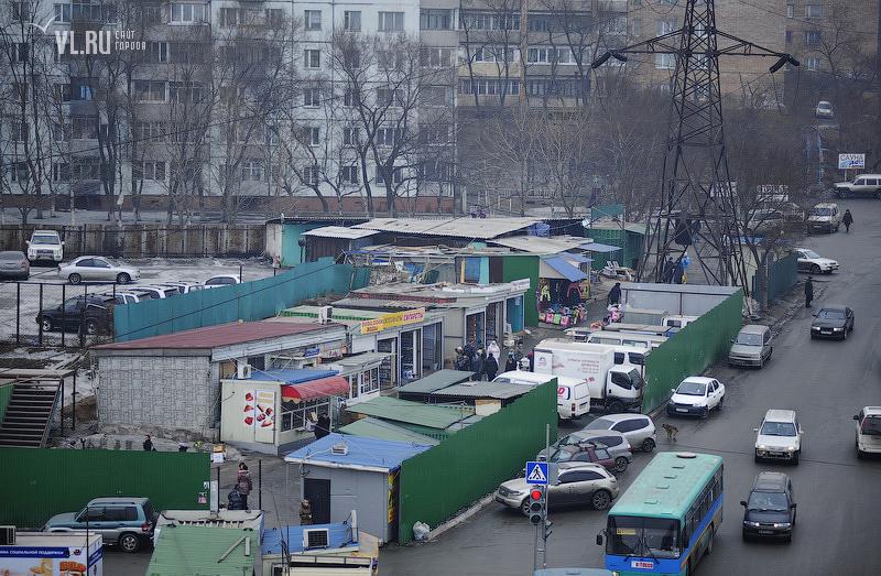 В конце 2010 года территория перед магазином "Стройматериалы" Департаментом земельных отношений, государственного строительного надзора и контроля в области долевого строительства Приморского края была отдана в аренду на законных основаниях предпринимателям на три года под торговые павильоны (ларьки) с формулировкой: "для целей, не связанных с капитальным строительством". После проведения различных согласований и обследования размеров этого участка, городская администрация дала "добро" краевым властям на сдачу земли в аренду. Почему во время проверок не выяснилось, что эта территория уже входит в ранее разработанный план по реконструкции и строить на ней ларьки не совсем нужное дело — остается неясным. Примечательно, что за последние два года губернатор Приморья и мэр Владивостока лично приезжали на этот участок и требовали по закону No.271 "О розничных рынках.." ускорить работу по сносу старых ларьков перед магазином "Стройматериалы" и строительству вместо них на прилегающей территории современных торговых центров. Получается, власти сначала демонтируют один ларечный рынок, а затем на его месте возводят другой.