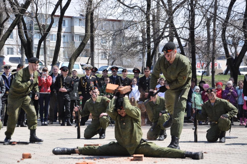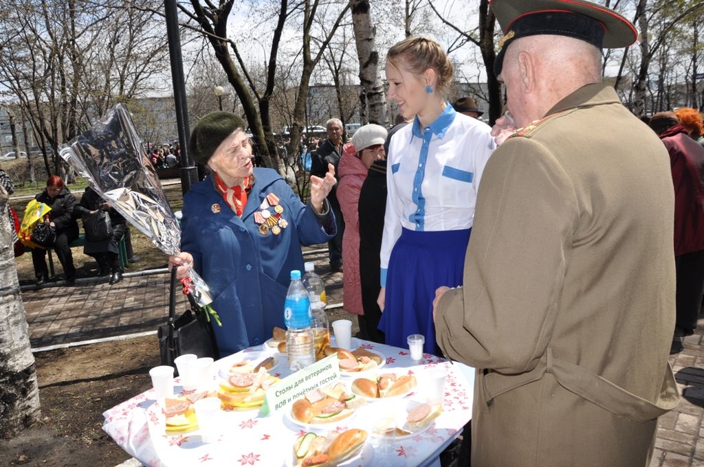 Праздник Великой Победы отметили в Первореченском районе![]() Торжественное мероприятие «Весна, Победа снова с нами» состоялось 7 мая у Дома Молодежи. На нем всех ветеранов Первореченского района поздравили с праздником Великой Победы над фашистской Германией. В рамках праздника прошел митинг, самым же торжественным моментом стало возложение к памятнику венка, гирлянды славы и цветов. Не менее захватывающим дух прошел парад Отдельных войск Владивостокского гарнизона, ребята в форме, выполняя четкие отточенные движения, добавляли этому празднику особый патриотический дух и не могли не радовать ветеранов, для которые сняли с себя военную форму 66 лет назад и теперь гордо несут на своей груди ордена и медали, хотя и передвигаются уже с трудом. Также всем им было предложено отведать бутербродов и «фронтовые 100 грамм». Каждому из этих людей, было уделено внимание и забота, поэтому лица их сияли от счастья, а эмоции переполняли: «Мне праздник очень понравился, я так благодарна, что нас, стариков не забывают. Меня уже второй день поздравляют, вчера подарили мне синий платок и поздравительную открытку в рамке. Когда мне вчера на мероприятии в ДКЖД женщина вручала, поцеловала в щеку, я аж расплакалась, потому что столько внимания ко мне впервые в жизни за 50-лет, которые я отработала. Хотя в прошлом году на 65-летие Победы меня приглашали в школу, я там выступала, мне подарили коробку конфет и грамоту, так я ее храню», - говорит ветеран войны Мария Кожевятова. После торжественной части на сцене начался концерт творческих коллективов, которые и пели, и плясали, и даже воссоздавали образы военных лет. Особое внимание заслужило показательное выступление морской пехоты, в котором парни имитировали борьбу, наступление с автоматами, от звуков которых сердце «уходило в пятки», и выполняли трюки, о которых обычно говорится, что без подготовки выполнять не рекомендуется. Что е касается солдатской каши, ставшей уже традиционной на 9-ое мая, то ее смогли попробовать все желающие. Стоит отметить, что весь праздник стояла на удивление хорошая и теплая погода: «Даже солнышко вышло, чтобы нас поздравить с этим праздником, я вспоминаю 45-й год, и был вот такой же день – светлый, солнечный, теплый – точно такой же, как и сегодня!»,- говорит Иван Панасюк – председатель Совета Ветеранов Первореченского района.