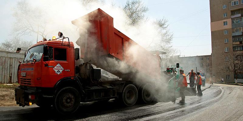 Как сообщили в МУПВ "Дороги Владивостока", за прошедшие сутки на дороги города уложено порядка 270 тонн асфальта.