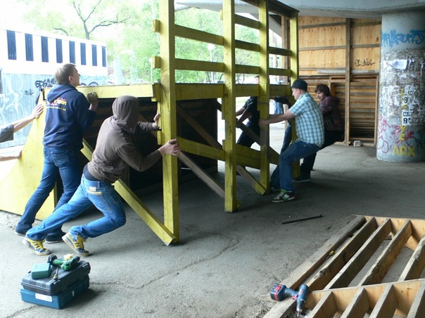 Также скейтерам придется серьезно восстановить часть конструкций. «Все дело в том, что первоначально все установки делались основательно, на совесть, поэтому при переезде некоторые приходится основательно «ломать». Восстанавливать, то есть менять старые части фигур на новые, нам придется за свой счет», - объяснил Денис Горбунов. Поэтому спасибо тем, кто откликнулся помочь нам с переездом. Так Группа компаний «Славда» предоставила для переезда на весь воскресный день грузовик-фургон.