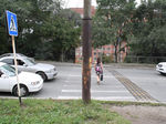 Корреспонденты «КП» отправились на автомобильную прогулку по Первореченскому району. Всем хороша улица Жигура: и асфальт под колесами стелется скатертью, и на разметку краски не пожалели, и даже лежачие полицейские не бьют по днищу легковушки, стало быть ГОСТу соответствуют. Но вот к пешеходам тут дорожники не шибко с душой отнеслись. В одном месте зебра упирается в проржавевшие за ненадобностью трамвайные рельсы. На другом переходе, если следовать строго по полосатой дорожке, прямиком упираешься в столб на газоне.