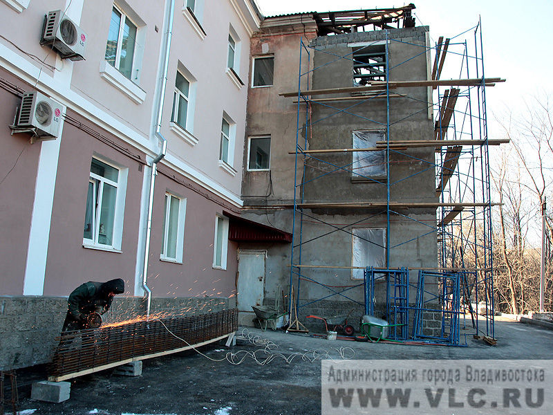 Восстановительные работы дома на ул. Руднева,5 подходят к завершению Завершаются работы в жилом доме на Руднева, 5. Заново из андезито-базальтовых блоков возведены стены трех этажей. Сейчас подрядчики укладывают чердачное перекрытие, сообщает пресс-служба администрации Владивостока.
