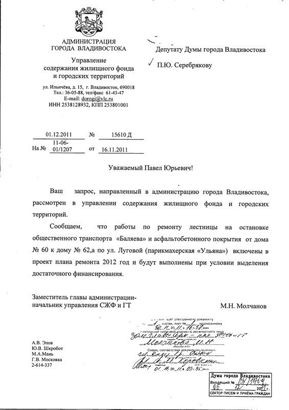 По поводу обращения жителей ул. Луговой в ходе личной встречи к Павлу Серебрякову, депутатом был отправлен запрос в администрацию города.