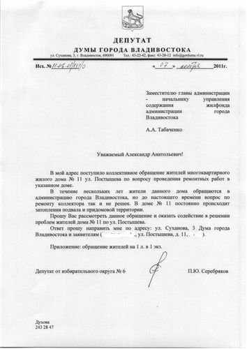 В адрес депутата Павла Серебрякова поступило коллективное обращение жителей дома ул. Постышева,11, по которому им был направлен запрос в администрацию города.