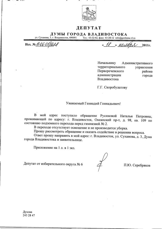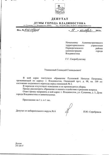 Жители района обратились в приёмную Павла Серебрякова помочь решить проблему уборки и реконструкции подземного перехода к гимназии №2. Стоит отметить, что в приёмную депутата ранее по данной теме жители не разу не обращались. Это обращение стало первым и потребовало иного подхода к решению проблемы.