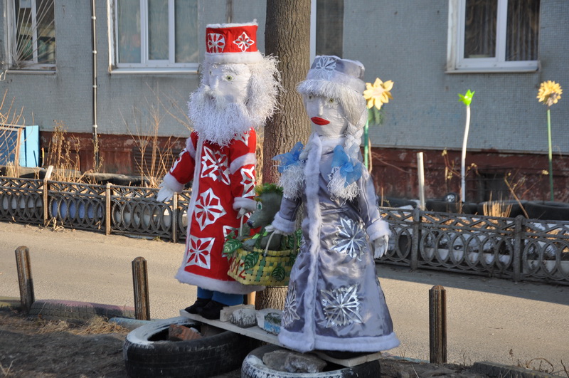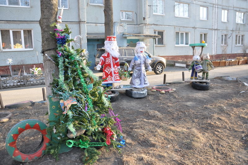 «Идея установить новогодних сказочных кукол во дворе дома родилась уже давно, но она постоянно откладывалась из-за отсутствия тех или иных материалов. А в этом году, у нас выезжал один из жильцов и оставил много ненужных вещей. Из них то и удалось соорудить кукол», - говорит старшая по дому ул. Карьерная,11 Людмила Краснова.
