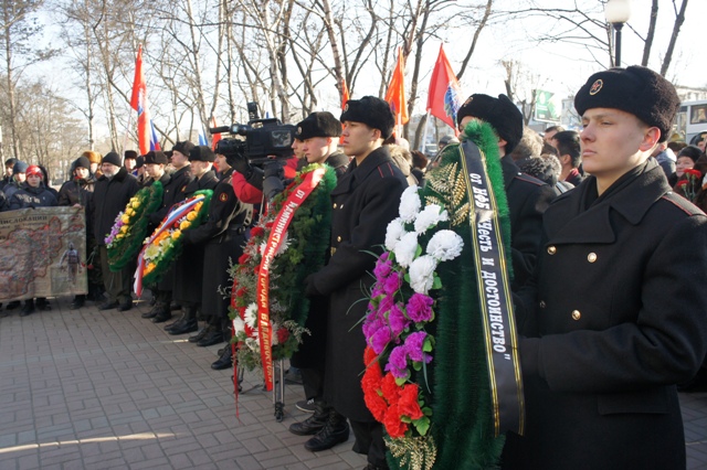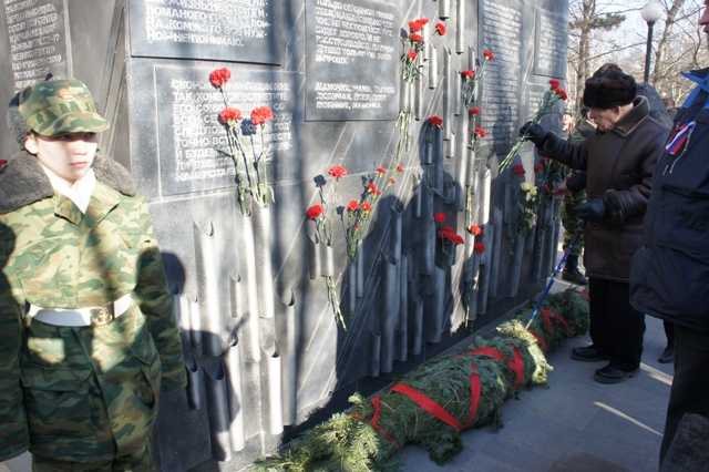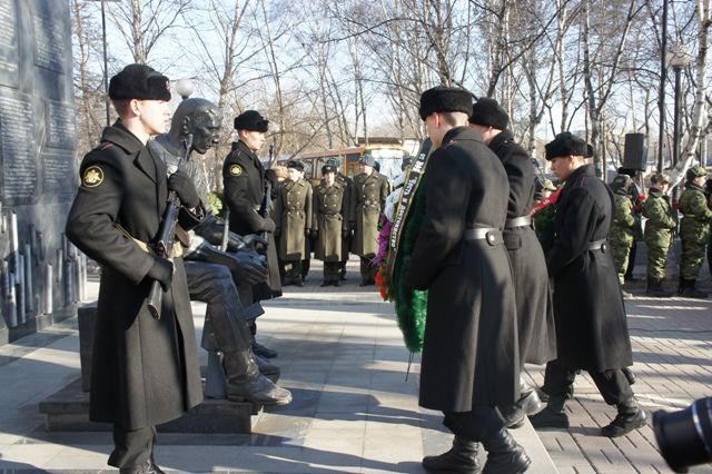 Память воинов-интернационалистов почтили сегодня у памятника приморцам, погибшим в локальных войнах и военных конфликтах![]() Торжественное мероприятие, посвященное Дню памяти о россиянах, исполнявших служебный долг за пределами Отечества, и 23-й годовщине вывода советских войск из Афганистана, прошло сегодня у памятника приморцам, погибшим в локальных войнах и военных конфликтах. Также сегодня ветераны боевых действий поделились историями из своего военного прошлого с молодежью на уроке мужества, сообщает корр. РИА PrimaMedia. В торжественном митинге и возложении венков и цветов у памятника приморцам, погибшим в локальных войнах и военных конфликтах у Приморского краевого Дома Молодежи приняли участие ветераны боевых действий, семьи погибших бойцов, военнослужащие, представители администрации Владивостока, депутатского корпуса, администрации Приморского края, члены общественной организации ветеранов боевых действий "Контингент", Приморского краевого отделения всероссийской общественной организации ветеранов "Боевое братство", школьники и представители общественности. Возложение венков Желающих почтить память воинов-интернационалистов собралось очень много. По словам члена общественной организации ветеранов боевых действий «Контингент» и участника боевых действий Павла Гетмана, это показатель того, что жители Владивостока помнят о событиях афганской войны и чтят героев-«афганцев». Желающих почтить память воинов-интернационалистов собралось очень много После митинга ветераны боевых действий под руководством председателя ОО «Контингент» Сергея Кондратенко провели урок мужества для активной молодежи Владивостока. Школьники, студенты колледжей и военнослужащие с большим интересом и вниманием слушали ветеранов. Ветераны рассказывали, что им пришлось пережить для спасения себя, товарищей и своей семьи. И каждая рассказанная история была частью жизни целой страны. Урок мужества для молодежи Первореченского района «Родина начинается с семьи, и, идя на войну, мы, прежде всего, защищаем свои семьи. Именно это вселяет в нас мужество, стремление преодолевать все трудности, независимо от опасности, свистящих над головой пуль, холода и всего прочего, - говорит член общественной организации ветеранов боевых действий «Контингент» Павел Гетман. - Но стоит помнить, что и сегодня мы должны быть настоящими патриотами. Ведь патриотизм, это, прежде всего, любовь к своей семье, дому, в котором ты живешь, городу. Каждый может взять на себя ответственность защищать все это. А начать можно с простого: не мусорить там, где живешь, остановить товарища, когда перед тем стоит соблазн попробовать наркотики, быть внимательнее к соседям, помогать старикам. Чтобы любить Родину, война совсем не обязательна. И сегодня любой может быть героем». После урока мужества прошла встреча-чаепитие родственников погибших участников боевых действий, где в теплой домашней обстановке матери погибших солдат и ветераны вспомнили о тех, кто погиб на войне в Афганистане. По их признанию, они увидели в ребятах, сидящих в зале своих детей, таких же молодых и родных, но жизни которых унесла война, и почувствовали себя в кругу семьи.