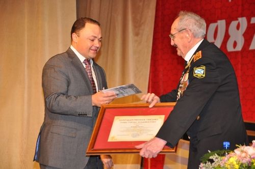 Городской Совет ветеранов во Владивостоке отметил четверть века со дня своего создания![]() Владивостокская городская общественная организация ветеранов войны, труда, Вооруженных Сил и правоохранительных органов отметила 25-летие. Торжественное мероприятие состоялось сегодня, 28 февраля, в Доме офицеров флота, сообщает корр. РИА PrimaMedia. Торжественное мероприятие началось с отчета о многолетней деятельности организации во Владивостоке, который представил собравшимся председатель Совета Ветеранов Яков Кан. Он вручил почетные грамоты тем, кто на протяжении многих лет принимал активное участие в жизни ветеранской организации, в том числе руководителям ряда общественных организаций Владивостока, районных Советов ветеранов. Поздравления от председателя Совета Ветеранов Первореченского района Ивана Панасюка С поздравительным словом выступил глава Владивостока Игорь Пушкарев, который вручил активистам организации почетные грамоты и благодарственные письма. Мэр отметил, что во многом благодаря работе Совета Ветеранов во Владивостоке активно развивается молодежное патриотическое движение. Кроме того, городская общественная организация ветеранов войны, труда, Вооруженных Сил и правоохранительных органов сыграла важнейшую роль в присвоении Владивостоку почетного звания Города воинской славы. Глава города вручает председателю городского Совета Ветеранов почетную грамоту В мероприятии приняли участие ветераны, представители администрации Владивостока, депутатского корпуса, военнослужащие и воспитанники городских патриотических клубов. Выступление хора "Я представляю поколение, которое уже можно назвать "внуками войны", - отметил депутат Законодательного Собрания Приморья Павел Серебряков. - Время неумолимо. И с каждым годом значимость работы Совета Ветеранов многократно возрастает. Несколько десятилетий назад казалось невозможным, что народная память о Великой Отечественной войне начнет тускнеть и стираться. Однако это происходит, и причин тому много: новые программы обучения в школах, не уделяющие должного внимания патриотическому воспитанию, засилие Интернета и развлекательного телевидения, уменьшение числа спортивных и патриотических клубов. Однако в последние годы ситуация начала меняться в лучшую сторону, и этому во многом способствует активная жизненная позиция членов ветеранской организации. Они не только отстаивают права ветеранов, борются с чиновничьей несправедливостью и равнодушием, но и сохраняют память о прошлых поколениях. И уже наша почетная обязанность - принять эту эстафету памяти", - сказал депутат. Павел Серебряков вручает почетную грамоту Якову Кану