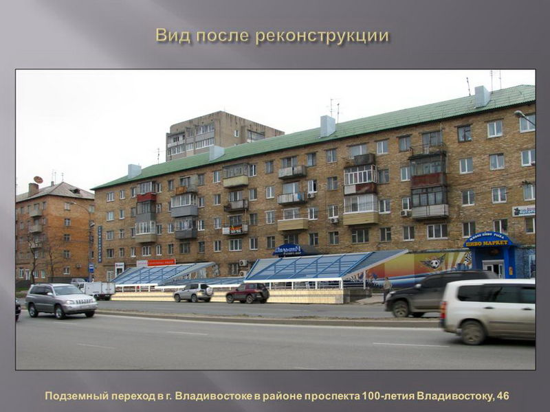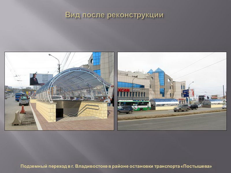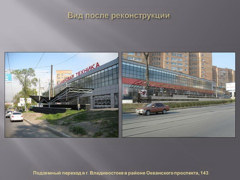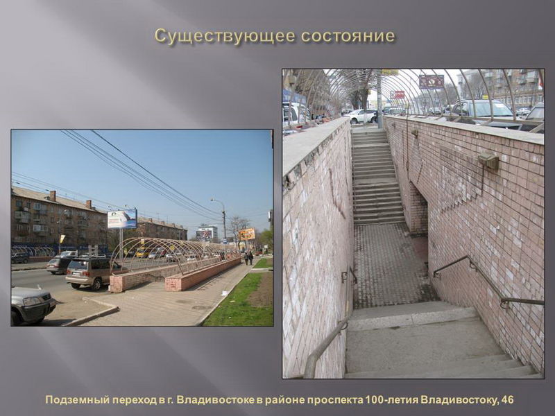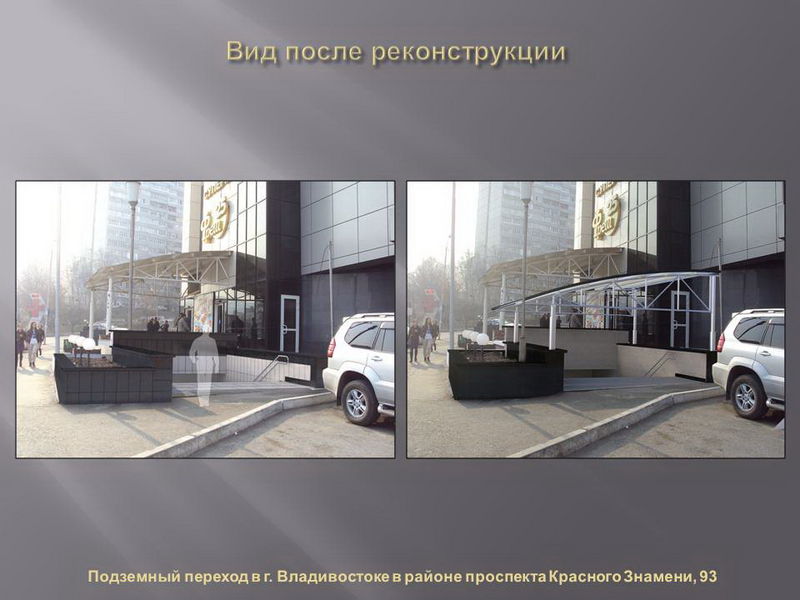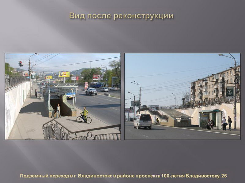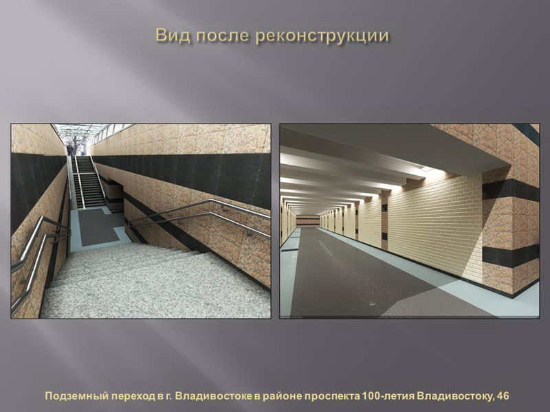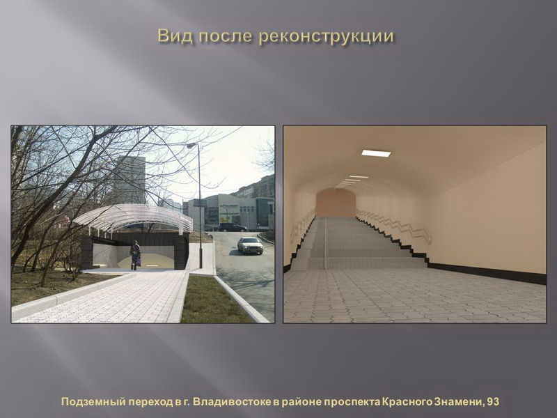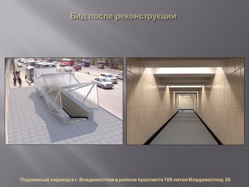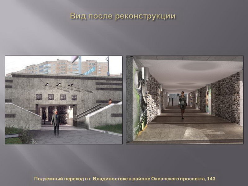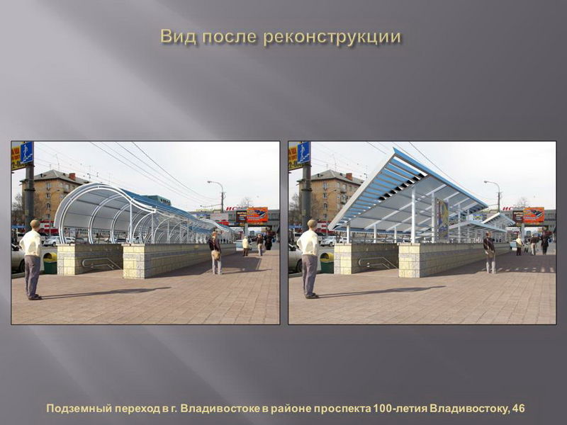 Проекты реконструкции разработали владивостокские архитекторы, дизайн сооружений по разным адресам будет различаться по стилю и цвету. В ряде переходов также будут оформлены навесы над входом.