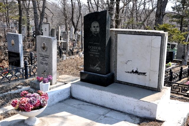Заброшенное моргородское кладбище в Первореченском районе завтра приведут в порядок![]() Жителей Первореченского района уже давно волнует проблема заброшенного моргородского кладбища. Со временем оно превратилось в свалку: недобросовестные предприниматели сваливают туда мусор прямо с грузовиков. Кроме того, старое кладбище стало объектом вандализма. Объединить усилия горожан для приведения в порядок заброшенного моргородского кладбища решился Павел Гетман, возглавивший акцию «Десант Памяти». Акция состоится 7 апреля, начало в 11 часов. Немногие горожане знают, что на старом кладбище были захоронены великие люди нашего города, ставшие легендой. В их числе - контр-адмирал Кирилл Осипович Осипов. Контр-адмирал родился 4 июня 1898 года в деревне Лисичино, Старорусского района Новгородской области. Его послужной список начался со школы юнг, которую он окончил в 1916 году, а в 1918 - учебно-методическое объединение БФ. Тогда же он стал минёром ЭМ «Дельный», а позже старшиной-минёром ЛК «Гангут». В 1922 года окончил Училище командного состава флота, и с 1922 года стал помощником командира ПЛ «АГ-23» МСЧМ. В 1925 г. Кирилл Осипов окончил класс подплава СККС флота и стал помощником командира подводной лодки «Нерпа» («Политрук»), с 1925 – подводной лодки "Шахтер" (экс-"АГ-23"), а с декабря 1926 года Кирилл Осипович стал уже командиром подводной лодки «АГ-24» («Коммунист»). В 1931 году Осипов окончил военно-морской факультет ВМА. Он был одним из первых командиров дивизии подводных лодок, которые пришли сюда в 1931 году. Осипов был назначен командиром 1-го дивизиона ПЛ МСЧМ – и это был первый дивизион подводных лодок после возрождения флота. В 1932 г. он стал командиром 1-й бригады ПЛ МСДВ. А 28 ноября 1936 года получил звание флагмана 2-го ранга – в дальнейшем это соответствовало званию контр-адмирала. Уже через два года Кирилл Осипович стал военным советником в Испании, а после возвращения в СССР - начальником военно-морской инспекции НК ВМФ. В феврале 1939 года был арестован, но через два месяца реабилитирован и назначен уполномоченным постоянной комиссии по приёмке кораблей. Дальнейшая судьба Осипова связана с высшим образованием на Дальнем Востоке. В 1940 году он стал ассистентом кафедры тактики ПЛ и ПЛО командного флота ВМА, и в 1942 году – и.д. доцента той же кафедры ВМА и представителем ГМШ ВМФ. Уже через год он занимал должность начальника морской группы при штабе Дальневосточного фронта, а позже - начальника Тихоокеанского ВВМУ – сегодняшнего ТОВМУ. За всю военную карьеру он был награжден двумя орденами Ленина (1935, 1945гг.), орденом Красного Знамени (1944г.) и медалями СССР. Кирилл Осипов стоял на трибуне в момент объявления о капитуляции фашистской Германии 9 мая 1945 года, когда у него случился сердечный приступ. Осипов был похоронен на моргородском кладбище. Три дня курсанты ТОВМУ стояли в почетном карауле у этой могилы. В 1982 году было принято решение произвести перезахоронение на Морское кладбище. Памятник Осипову на Морском кладбище Как рассказывают очевидцы, церемония была обставлена торжественно. Однако по слухам - тело так и не было перенесено и осталось в склепе моргородского кладбища – он, действительно остался нетронутым. Оставшийся склеп Кириллу Осипову У этого склепа убрали памятник, оградку из морских цепей и якорей. Сейчас эта могила не имеет каких-либо отличи