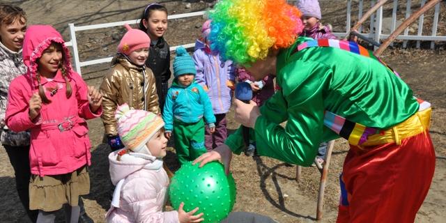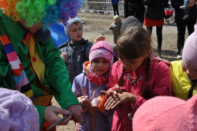 Радости малышей не было предела, они визжали, смеялись и участвовали во всех играх, предлагаемых клоуном. Вместе с ним дети танцевали, отгадывали загадки и делали себе «татуировки» специальными разноцветными карандашами.