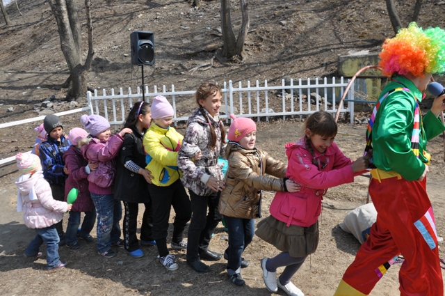 Праздник получился двойным: взрослые установили детскую площадку и организовали веселое представление с клоуном, конкурсами и подарками. Улица озарилась веселой музыкой и к новенькой цветной детской площадке сбежались ребятишки с ближайших дворов.