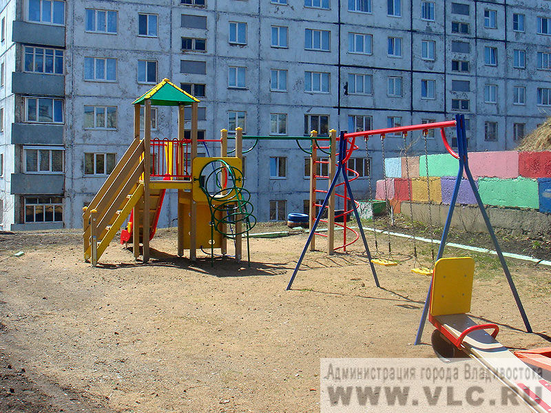 Детские игровые комплексы, качели, карусели и скамейки появились во дворах на улицах Башидзе, 16, Давыдова, 40, 42, 42а, Полярной, 3, 5, на острове Русский. В Первореченском районе площадки были установлены во дворах домов №№ 52, 56, 58 и 66 по ул.Тухачевского.