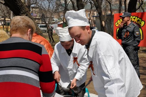 Первореченских ветеранов поздравили с Днем Победы на открытой площадке Дворца железнодорожников![]() Первореченских ветеранов поздравили с Днем Победы на открытой площадке Дворца железнодорожников. Причем праздничный концерт плавно перешел в танцы. Чтобы ветеранам было удобнее смотреть концерт творческих коллективов города на улицу с Дворца железнодорожников вынесли стулья. Но как только начинал играть духовой оркестр, стулья пустели – ветераны начинали вальсировать. «Мне очень нравится сегодняшний праздник. Я в восторге от того, как хорошо все организованно. Все старики заняты, они востребованы, и для них это как никогда важно! Очень вкусная каша», - говорит член Совета Ветеранов железнодорожников Валентин Жарков. «Я уже пятнадцать лет подряд участвую в таких мероприятиях, а мне уже почти 90 лет. С каждым годом я становлюсь старше, а мероприятия еще интереснее. Радует меня сегодня хорошая организация, да погода шепчет. Сегодня как никогда тепло, и от этого становится еще радостней», - участник войны Григорий Вакулишин. «Для меня участие в этом празднике стало хорошей традицией. Сколько лет уже празднуется этот праздник, и каждый год привносится что-то новое, и от того, как ты настроен, зависит твое восприятие всего происходящего», - член Совета Ветеранов Первореченского района Федор Собчак. «Такие праздники необходимы и для молодежи, мы должны больше знать о своих корнях, больше общаться с ветеранами. Сегодня мы с ними танцуем, им очень нравится танцевать, они пытаются вспомнить вальс, танцевальные шаги. Такие форматы мероприятий поднимают настроение и им, и нам», - Юлия Полякова. Традиционно всех желающих накормили «солдатской кашей», которая, по признанию ветеранов, была как обычно очень вкусная.