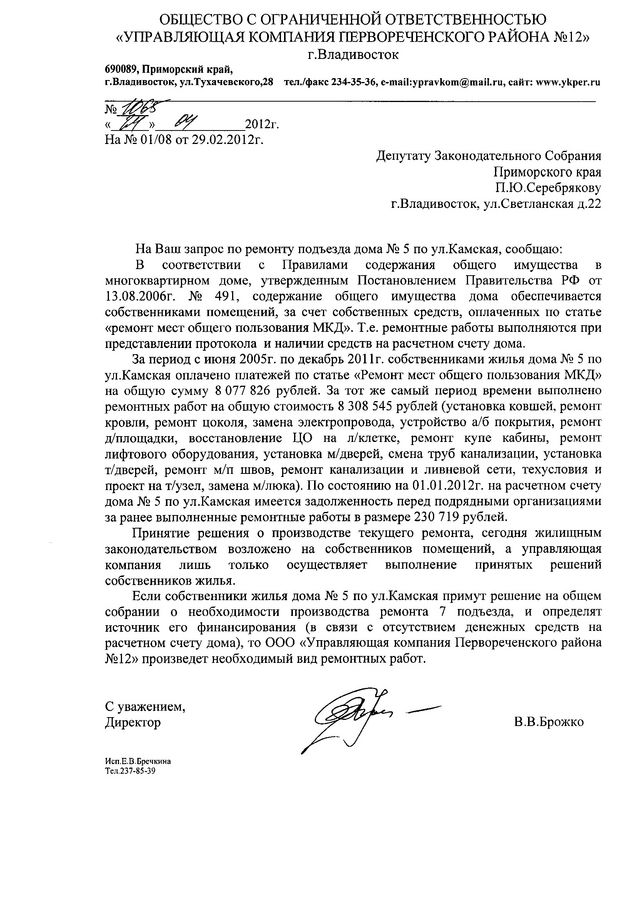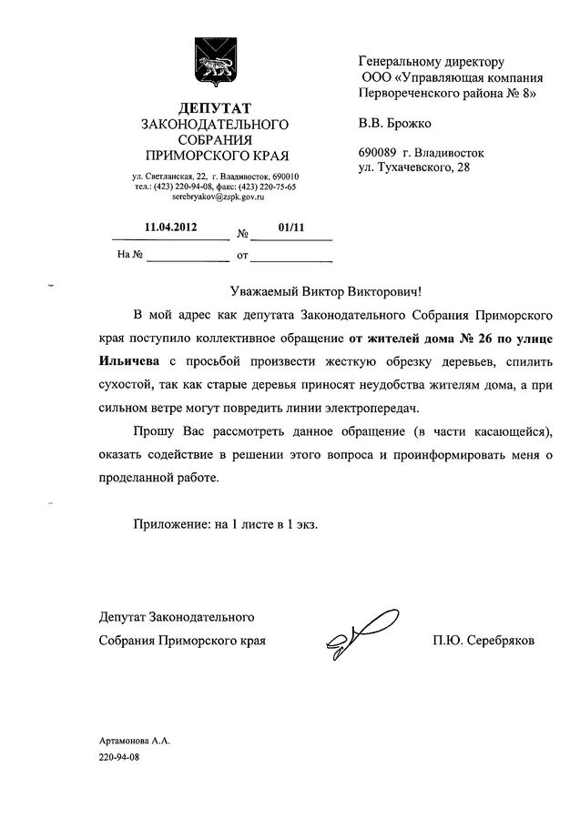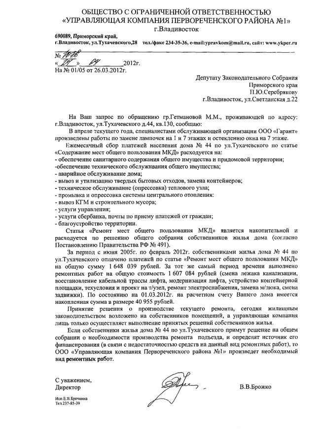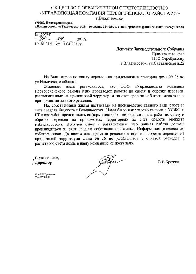 Вопросы, связанные с работой управляющих компаний, остаются актуальными![]() Вопросы, связанные с работой управляющих компаний, остаются по-прежнему актуальными. В общественную приемную депутата Законодательного Собрания Приморского края Павла Серебрякова продолжают поступать обращения от жителей Первореченского района с просьбой помочь решить те или иные проблемы обслуживания их домов. Так в адрес депутата поступило обращение от жителей ул. Ильичева,26 с просьбой помочь произвести жесткую обрезку деревьев, спилить сухостой, так как старые деревья приносят неудобства жителям дома, а при сильном ветре могут повредить линии электропередач. Как ответила «Управляющая компания Первореченского района №8», она может произвести работы по спилу и обрезке деревьев, расположенных на придомовой территории, только за счет средств собственников жилья при принятии данного решения. Данные работы невозможно произвести за счет бюджета города, такой ответ был получен управляющей компанией на запрос в УСЖФ с просьбой предоставить информацию о формировании плана работ по спилу и обрезке деревьев на придомовых территориях за счет средств бюджета Владивостока. Эта информация была доведена до пользователя, но пока решение о спиле деревьев на придомовой территории дома №26 по ул. Ильичева с оплатой расходов с расчетного счета дома не поступало. Также в общественную приемную поступило обращение от жителей домов ул. Тухачевского,44 и ул. Камская,5 с просьбой посодействовать в принятии решения управляющей компанией о ремонте в подъездах. Согласно ответу «Управляющей компании Первореченского района №8», статья «Ремонт мест общего пользования МКД», по которой производится ремонт в подъездах, является накопительной и расходуется по решению общего собрания собственников жилья дома. Если собственники жилья дома ул.Тухачевского,44 и ул. Камская,5 примут решение на общем собрании о необходимости производства ремонта подъезда и определит источник финансирования, поскольку у дома нет на счету достаточных средств, то «Управляющей компании Первореченского района №8» произведет необходимый вид ремонтных работ. Также в приемную депутата с просьбой обновить детскую площадку обратились и жильцы дома №6 по ул. Героев Варяга. Как ответила «Управляющая компания Первореченского района №2», принятие решение о производстве текущего ремонта, в том числе и по обустройству детской площадки, сегодня жилищным законодательством возложено на собственников помещений, а управляющая компания только осуществляет выполнение принятых решений собственников жилья. Если собственники жилья дома №6 по ул. Героев Варяга примут решение на общем собрании о необходимости установки современной детской площадки, то при наличии денежных средств на расчетном счете указанного дома, «Управляющая компания Первореченского района №2» произведет необходимый вид работ. От администрации сайта 1Речка заметим, что жильцам стоит активнее вникать в тонкости работы управляющей компании не столько даже для выяснения перечня работ, которые может и должна делать УК, сколько внимательно контролировать списание средств с лицевого счета своего дома: какие и когда выполнены работы? не завышены ли цены на ремонт? насколько качественно проведены работы? Ответы на эти и другие вопросы по