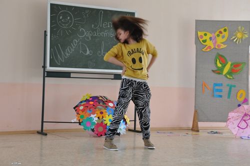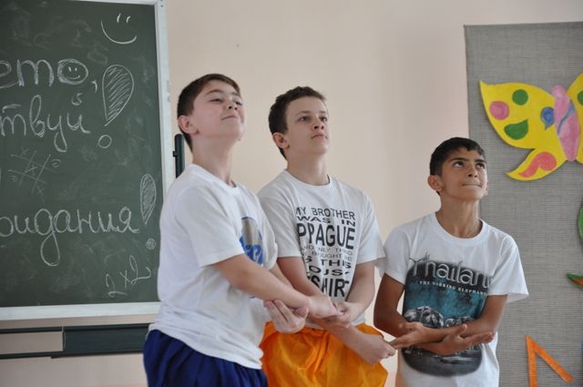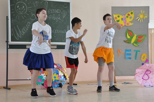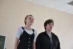 К праздничному мероприятию школьники подготовили концерт: пели, читали стихи, танцевали и показывали пародийные сценки.