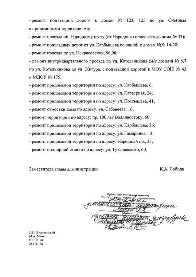 Определен итоговый список дорожной инфраструктуры Первореченского района, подлежащей ремонту в 2012 году![]() Определен итоговый список подъездных и придомовых дорог и подпорных стен Первореченского района, подлежащих ремонту в 2012 году. К уже существующему перечню на сайте 1речка добавилось еще два адреса на улицах Гамарника и Тухачевского. Согласно официальному ответу администрации Владивостока на запрос депутата Законодательного Собрания Приморского края Павла Серебрякова, в 2012 году на бюджетные средства планируется отремонтировать на два объекта больше, чем ранее указывалось на сайте 1 речка. К числу улиц, которые будут благоустроенны в этом году, добавились ул. Гамарника и Тухачевского. Ремонт и восстановление асфальтобетонного покрытия, бордюрного камня будет произведен на подъездной дороге от проезжей части по ул. Гамарника к дому №7, от дома №7 к домам №№5, 5а по ул. Гамарника. Также планируется отремонтировать подпорную стенки по адресу ул. Тухачевского,60. Как прокомментировал сайту 1Речка депутат Законодательного Собрания Приморского края Павел Серебряков, ремонт подъездной дороге от проезжей части по ул. Гамарника к дому №7, от дома №7 к домам №№5, 5а по ул. Гамарника, как и многие в списке на этот год, был запланирован еще в прошлом году, но по определенным причинам не был произведен. Поэтому он также был перенесен на текущий год. Второй же адрес – на ул. Тухачевского – давняя проблема, давно беспокоившая жителей. Состояние подпорной стены требовало незамедлительного вмешательства. «Дорога на ул. Гамарника, как и большинство дорог, заявленных в списке на ремонт в 2012 году – наболевшая. Она уже была в списках адресов на выполнение ремонта, и попала в конкурсную документацию прошлого года, но ремонт администрацией города произведен не был по ряду причин. В этом году мы столкнулись с проблемой, что по некоторым адресам дороги на столько изношены, что по ним почти невозможно нормально передвигаться, такой как раз является подъездная и придомовая дорога на Гамарника. Подобные дороги – предмет постоянных обращений граждан в мою приемную, поэтому они в первую очередь подаются мною в наказах избирателей. Так общими усилиями, нам удалось добиться перенесения адресов прошлого года в нынешний список. Надеюсь, что в этом году работы будут выполнены в полном объеме и качественно». Напомним, что следить за качеством выполнения работ и сообщать можно, обратившись в приемную депутата Павла Серебрякова, либо на форуме сайта 1речка.ру. Полный адресный список придомовых территории, подлежащих ремонту в Первореченском районе можно посмотреть здесь.