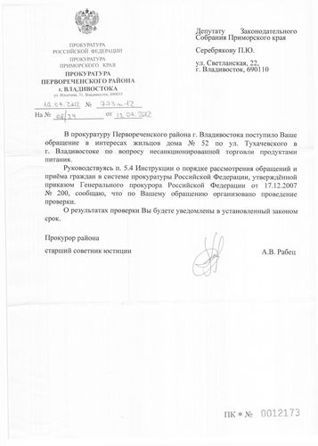 Как ответили в администрации Владивостока, представителями уполномоченного органа администрации проведены мероприятия по пресечению несанкционированной торговли с выездом на место.