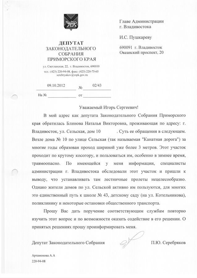 Установить лестницу на спуске с улицы Сельской к Стрелочной не позволяют нормы Госстроя России Установить лестницу на спуске с улицы Сельской к Стрелочной не позволяют нормы Госстроя России. Такой ответ дала администрация Владивостока на запрос депутата Законодательного Собрания Приморского края Павла Серебрякова.