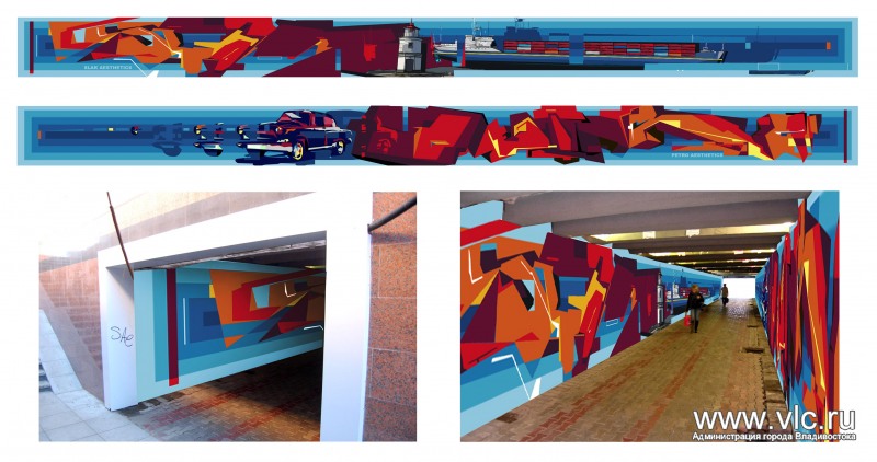 Стены в подземных переходах на улице Столетия впервые распишут Эскизы новых росписей на городских объектах готовят в администрации Владивостока. В этом году яркие картины традиционно появятся на нескольких подпорных стенах, а также впервые в подземных пешеходных переходах, сообщает пресс-служба администрации Владивостока.