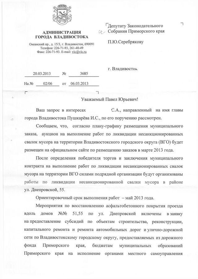В приемную депутата Павла Серебрякова обратилась жительница Первореченского района с просьбой выяснить планы городской администрации относительно обустройства парковой зоны в районе железнодорожной станции «Моргородок».