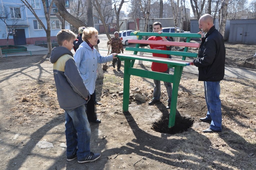 «Раньше у нас тут была полноценная детская площадка, а потом все постепенно сломали, и на ней даже начали парковаться автомобили. В прошлом году мы попросили своего депутат Павла Серебрякова помочь нам с ограждением детской площадки, и после установки заборчика мы начали облагораживать территорию. В этом году депутат снова откликнулся на нашу просьбу и привез нам две песочницы и скамейки. Теперь детишкам двух дворов будет, где играть», - говорит старшая по дому №64 по улице 100 лет Владивостоку Татьяна Боголюбова.