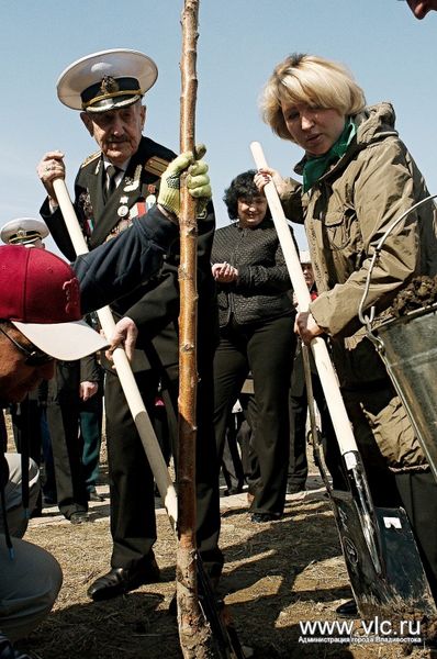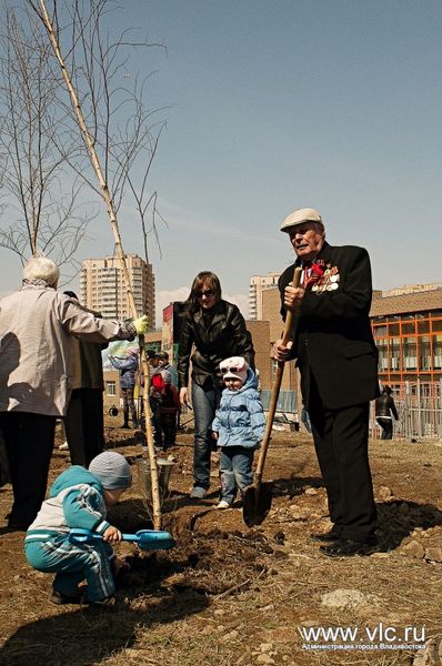 Больше сотни берез высадили в Аллее ветеранов в Снеговой Пади Ветераны Владивостока совместно с сотрудниками компании "Аквастим" высадили больше 100 каменных берез в микрорайоне Снеговая Падь, оформив Аллею ветеранов. Помогали им жители района вместе с детьми. Рядом с каждой такой березой оформлена табличка с именем и фамилией одного из ветеранов. Первая табличка и первая береза высажена в честь Якова Григорьевича Кана, сообщили в пресс-службе администрации Владивостока.