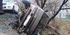 Оказалось, что рухнувшая стена опрокинула автомобиль Toyota Master Ace на бок, и его протащило около метра на территорию общеобразовательной школы.