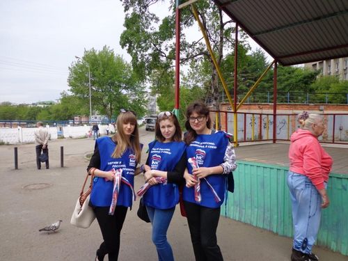 Традиционно активисты Первореченского отделения «Единой России» и волонтеры гуманитарно-коммерческого колледжа призвали жителей района к единству. Взрослые и дети прикрепляли ленточки, подаренные волонтерами, к одежде и на автомобили.