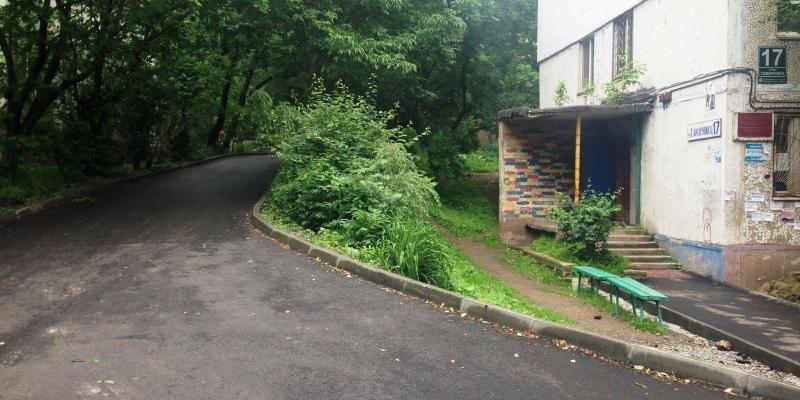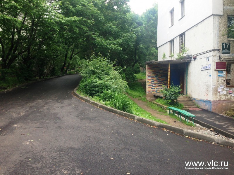 Завершен ремонт придомовых дорог на улице Гамарника Комплексный ремонт внутриквартальных дорог по адресам ул. Гамарника, 9, 11, 13 и 17 завершен. По поручению главы города Игоря Пушкарева здесь было уложено новое дорожное покрытие, заменены бордюры, а также отремонтированы тротуары, сообщает пресс-служба администрации Владивостока.