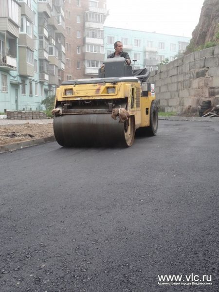 Кроме того, муниципальное предприятие «Дороги Владивостока» продолжает ремонт внутриквартальных проездов во всех районах города. В Первореченском районе бригады рабочих устанавливают бордюрный камень и готовят щебеночное основание дороги к асфальтированию проезда по ул. Героев Варяга, 4-10.