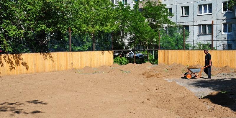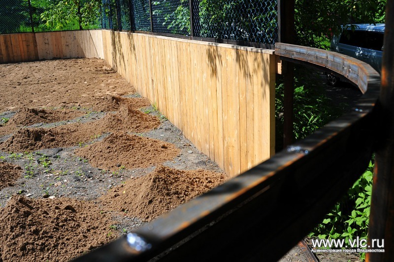 Рабочие уже полностью заменили здесь борта, установили новую сетку-ограждение, провели работы по выравниваю площадки. Впереди - покрасочные работы.