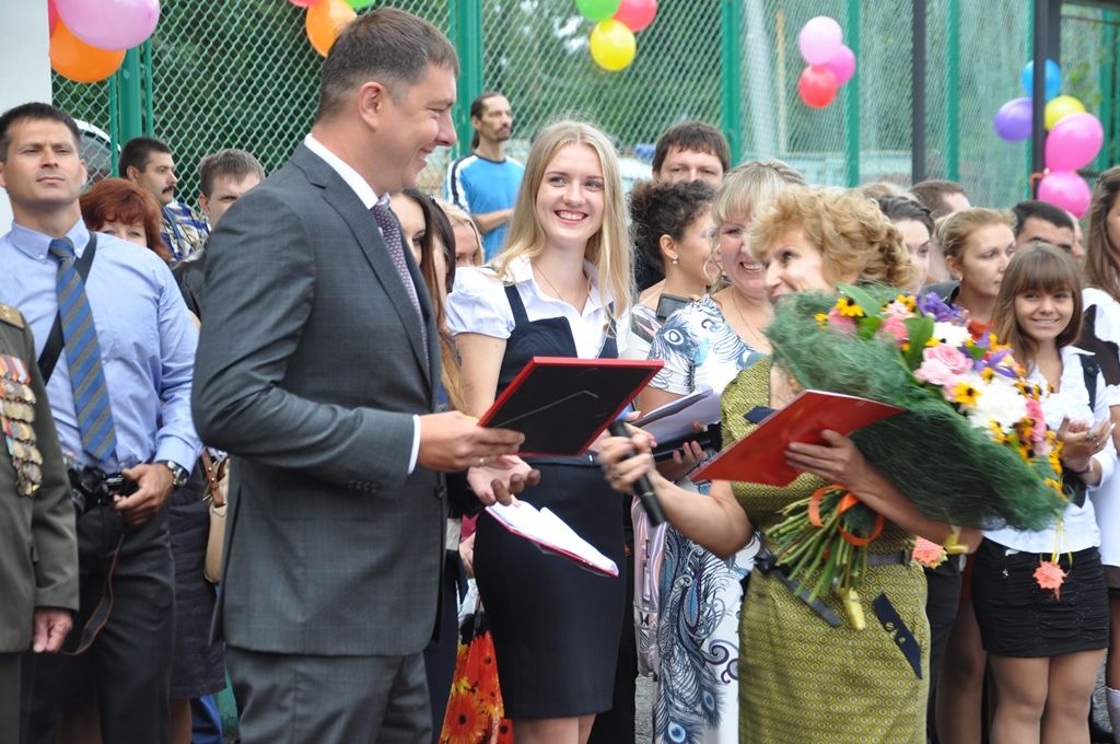 Торжественная линейка в День Знаний прошла в школе №52 Владивостока![]() Торжественная линейка в День Знаний прошла в школе №52 Владивостока. Мероприятие развернулось на пришкольном стадионе, где школьников поздравило руководство школы и приглашенные гости. С торжественным словом ко всем участникам обратилась директор школы Елена Дмитриенко: «Сегодня в сентябрьский погожий, немножечко хмурый, но очень радостный для всех день мы собрались здесь, чтобы начать новый учебный год. Нашим старшеклассникам я желаю победы – успешно сдать экзамены. Нашим первоклассникам, их 89 человек – три небольших класса, желаю полюбить нашу школу, не бояться своих первых учительниц, быть смелыми и держать ориентир на одиннадцатиклассников, быстро дорасти до них, научиться писать, читать, хорошо решать задачи и быть внимательными. Всем успехов!», - поздравила всех присутствующих Елена Дмитриенко. Елена Дмитриенко Традиционным гостем школы в этом году снова стал депутат Законодательного Собрания Павел Серебряков. Павел Серебряков «Поздравляю вас с этим праздником – началом нового учебного года. Первоклассников, родителей, чьи дети только начали постигать все школьные тягости и радости, выпускников, которым предстоит сдавать достаточно сложные экзамены, определяющие их дальнейшую жизнь, и педагогов – это общий праздник и новый этап в жизни каждого. Учителей хочется поздравить со вступлением в силу нового закона об образовании, который тоже, надеюсь, качественно изменит к лучшему жизнь образовательных учреждений. А всем родителям и детям я желаю терпения, терпимости друг к другу и взаимоуважения», - говорит Павел Серебряков. За активное участие в жизни школы и постоянную помощь и внимание Павла Юрьевича наградили почетной грамотой, что было полной неожиданностью для всех. Также школу посетил и председатель Первореченского Совета ветеранов Иван Панасюк, который пожелал детям хорошей учебы и успешного окончания этого учебного года. Иван Панасюк