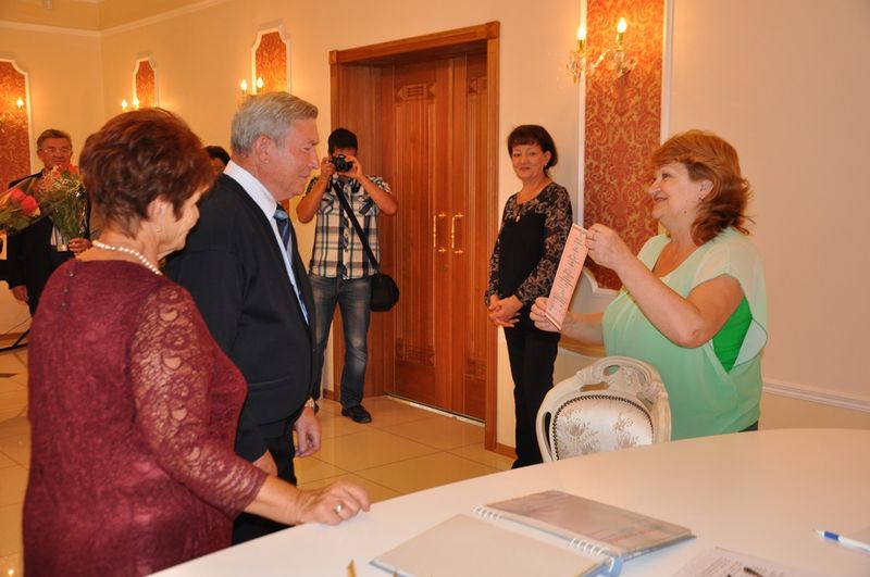 Первореченскую семью Пеньковых торжественно поздравили с Золотой свадьбой![]() Торжественное мероприятие – чествования «Золотых юбиляров» семьи Пеньковых Владимира Павловича и Инессы Свиридовны, зарегистрировавших свой брак 21 сентября 1963 года, прошло в отделе ЗАГС по Первореченскому району. Юбиляры в этот день заново почувствовали себя молодыми и прошли по залу ЗАГСа под марш Мендельсона. Поздравления «молодожены» получили от сотрудников ЗАГСа, первореченского отделения партии «Единая Россия», родных, друзей и депутата Законодательного Собрания Приморского края Павла Серебрякова, который подготовил для семьи подарок, ставший для Пеньковых сюрпризом. «Спасибо вам, что своим примером вы учите молодежь любить и ценить друг друга, заботиться и радоваться каждому дню, прожитому вместе, взаимопониманию и мудрости. Желаю вам, чтобы любовь и нежность всегда наполняли ваш дом радостью, теплом и уютом. Здоровья, благополучия, счастья, и, конечно же, любви!», - зачитали поздравление от Павла Серебрякова. Сотрудники ЗАГСа рассказали всем присутствовавшим про непростой трудовой путь Владимира Павловича и Инессы Свиридовны: «Оба юбиляра приехали строить новый Владивосток из северных районов Приморья: она из Дальнегорского района, он из Тернейского. Познакомились на стройке. Инесса Свиридовна 45 лет отработала на заводе ЖБИ-2, вела большую общественную работу, неоднократно избиралась депутатом районного, потом городского Советов, за многолетний труд и большую общественную работу награждена Орденом трудовой славы третьей степени, множественными почетными грамотами. Владимир Павлович всю жизнь трудился на одном предприятии в СУМ-2, где продолжает трудиться по сей день. Также неоднократно награждался за свой труд множественными наградами. Оба супруга – ветераны труда, их совместный трудовой стаж почти 100 лет. Воспитали дочь, вырастили внучку, помогают воспитывать правнука». В конце торжественной церемонии «молодожены» исполнили для всех гостей вальс.