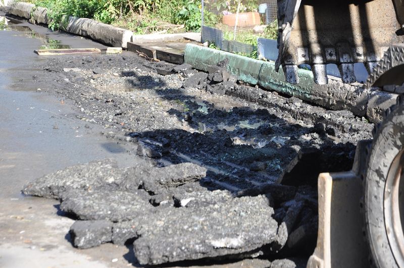 Подрядчик уже приступил к работе. Сейчас вскрывается асфальт в тех местах, где будут установлены решетки для ливневой канализации. После устранения проблемы асфальт снова будет положен.