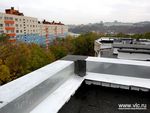 Месяц назад бригады рабочих начали здесь ремонт. Сняли старый слой, заделали все швы, положили новое покрытие. Сегодня крыша готова практически на 95 %.