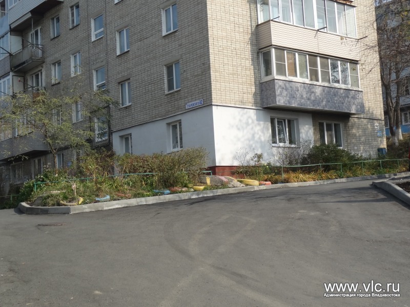 Напомним, что комплексный ремонт придомовых территорий проводится во Владивостоке по поручению главы города Игоря Пушкарёва. В 30 дворах помимо новых бордюр и асфальтового покрытия устанавливают детские игровые и спортивные комплексы. В первореченском районе завершены и приняты работы по улице Жигура, 22, Гамарника, 19-21, Карла Жигура, 12-16, Карла Жигура, 32, Некрасовской, 57, Сельской, 9, проспекту 100-летия, 159г, Гамарника, 7.