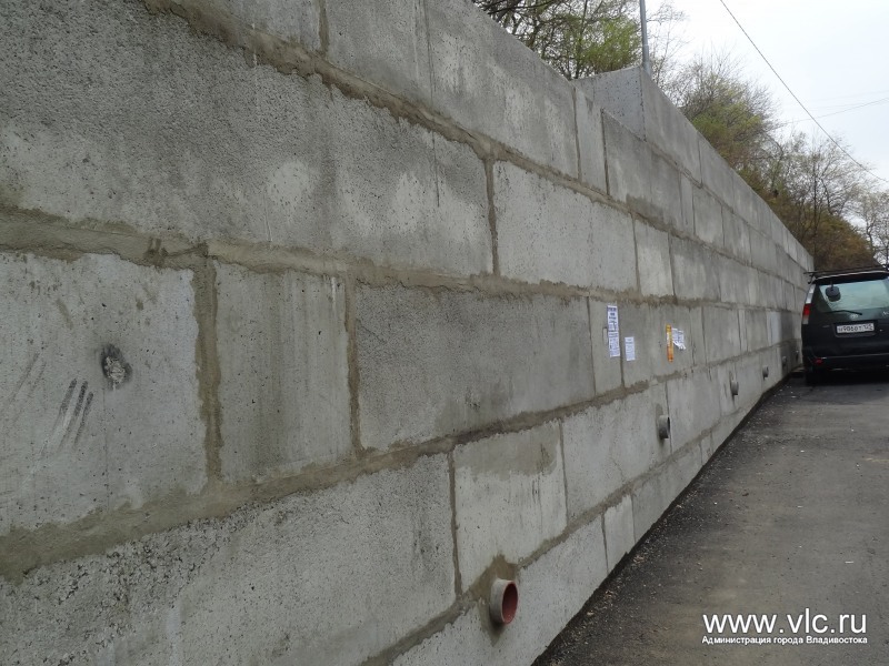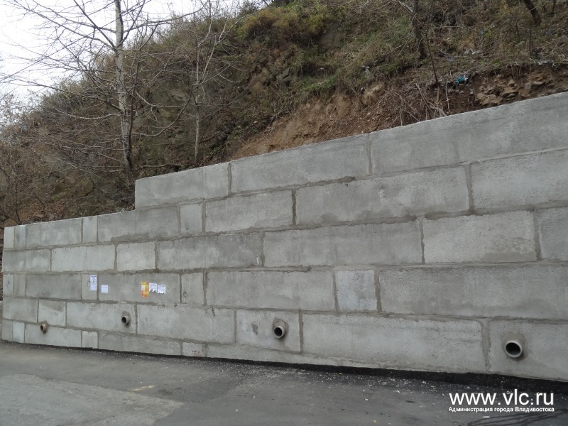 Завершена реконструкция подпорной стены по улице Аллилуева Строители завершили реконструкцию подпорной стены по улице Аллилуева в районе дома №8, которая была разрушена сильными ливнями летом этого года. Подрядная организация демонтировала старые, изношенные конструкции и установила новые железобетонные блоки. Стоит отметить, что конструкцией новой стены предусмотрен отвод грунтовых и ливневых вод, сообщает пресс-служба администрации Владивостока.