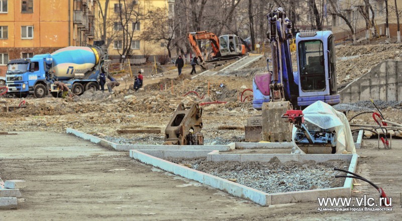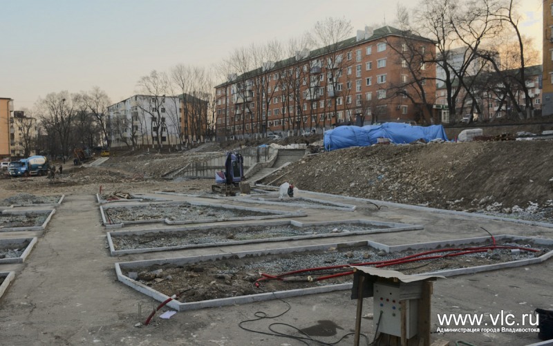 Строительство нового сквера на улице Овчинникова идет по поручению главы Владивостока Игоря Пушкарева.