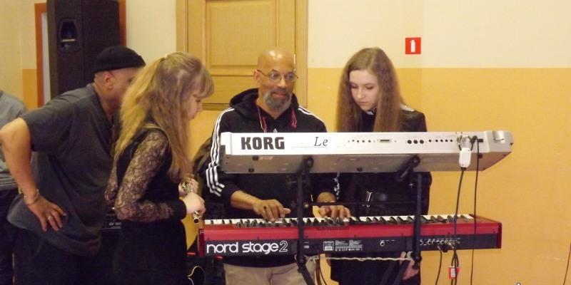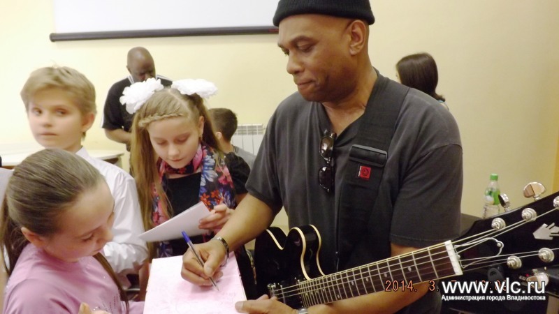 Ученики школы искусств №3 встретились с музыкантами из Америки![]() Творческая встреча воспитанников и педагогов муниципальной детской школы искусств №3 с вокалистом Таем Стивенсом и музыкантами SOULJAZZ-квартета (Нью-Йорк, США) прошла во Владивостоке. Музыканты выступили перед учениками, раздали автографы и провели мастер-класс, сообщили в пресс-службе администрации Владивостока. Поприветствовал присутствующих генеральный консул США во Владивостоке г-н Эрик Холм-Олсен, затем музыканты исполнили ряд собственных и известных джазовых композиций, пообщались со зрителями, охотно ответили на вопросы, открывая секреты своего мастерства. Музыканты пригласили на сцену учащихся эстрадного класса. В исполнении юных артистов прозвучала композиция Дэйва Брубека «Пять четвертей». Далее гости провели мастер-класс - показали ребятам аккорды мирового хита Дюка Эллингтона «Караван» и исполнили его вместе с учениками под аплодисменты зрителей. Американские музыканты высоко оценили подготовку ребят, пожелали научиться еще многому, чтобы в дальнейшем играть свою музыку. Как сообщили в детской школе искусств №3, зрители долго не отпускали артистов, просили исполнить музыкальные композиции на бис, брали автографы, фотографировались. Музыканты смогли уделить внимание каждому, встреча продолжалась около трех часов. Ребята подчеркнули, что встреча с настоящими звездами мирового джаза, искреннее и открытое общение, желание поделиться секретами мастерства запомнится им навсегда. «Мы благодарны Генеральному консульству США во Владивостоке за предоставленную возможность такого мастер-класса и признательны музыкантам - Таю Стивенсу (вокал), Ричарду Каммингсу (клавишные), Рону "Рондью" Монро (бас), Тони Льюису (ударные) и Роберту Тейлору (гитара)», - сказал директор ДШИ №3 Сергей Токарев. К слову, творческая встреча с музыкантами мирового уровня в детской школе искусств школы искусств №3 далеко не первая. Так, в ноябре ребята встретились с джазовым трио Дэвида Хельбока.