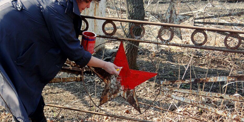На оградках и могилах фронтовиков подкрасили победные звезды, чтобы героев знали и помнили.