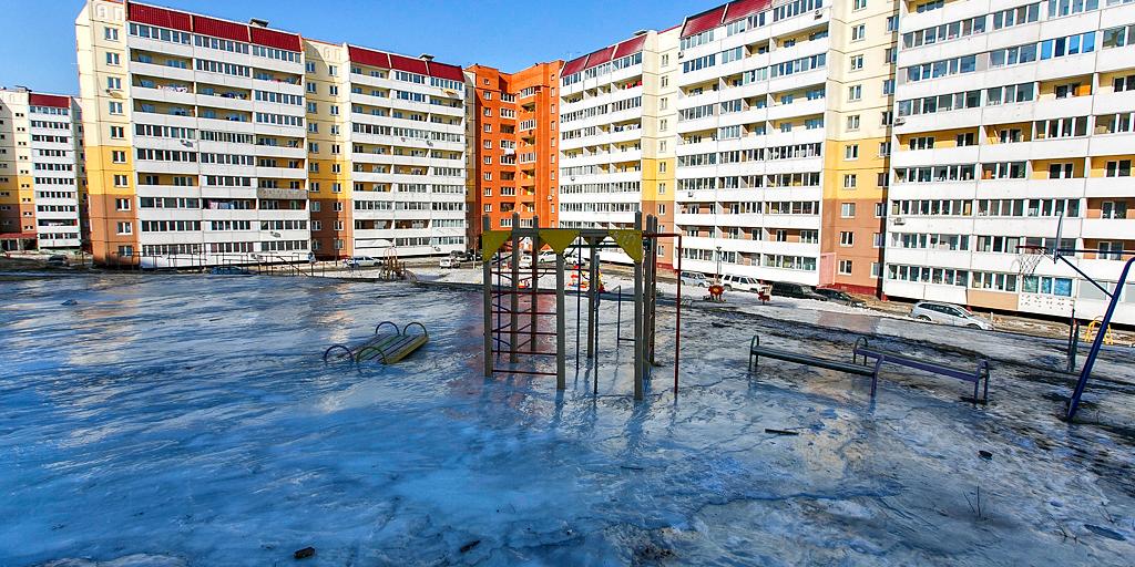 Однако корреспонденту агентства не составило труда найти те самые "ледяные царства", на которые и по сей день жалуются местные жители. Особенно удивили детские площадки и лавочки, буквально по сидение вмерзшие в лед. Во многих местах создается впечатление, что дорожки и площадки совершенно никто не чистил.