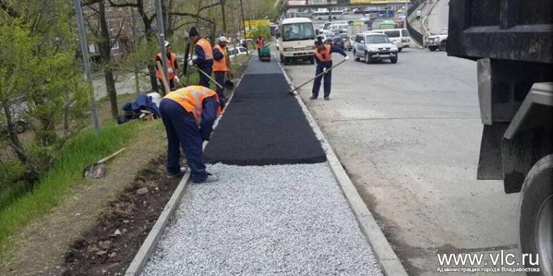Как сообщили в управлении дорог и благоустройства администрации Владивостока, сейчас продолжаются работы по ремонту тротуаров на ул. Жигура, 52 (в районе школы №67), проспекте 100-летия Владивостока (в районе остановки Постышева), в районе остановки общественного транспорта «Стройматериалы» на участке от дома №11 по ул. Постышева до дома №60 по проспекту 100-летия Владивостока и по ряду других адресов.