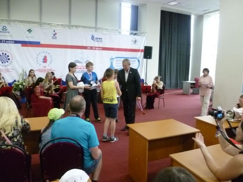 В пятом по счету «Тихоокеанском меридиане» приняли участие около 200 человек, преимущественно из регионов Дальнего Востока и Восточной Сибири. Во Владивосток приехали, в том числе, сильнейшие гроссмейстеры, входящие в топ-100 России. Соперниками россиян стали шахматисты из Монголии, Китая и стран Средней Азии. В турнире «Остров Русский» участвовали 35 девочек и 69 мальчиков. Занявшие первые места в разных возрастных категориях: Илья Кулаков, Ксения Хорунжева, Даниил Паньков, Софья Гусак, Артём Антипин, Наталья Борисова, Данил Ещенко, Эмма Кисилёва. Среди победителей и призеров большинство спортсменов — из Приморья. Впрочем, неплохо показали себя представители Хабаровского края. Юрий Корсаков наградил медалями и грамотами самых победителей турнира «Остров Русский». Как отметил депутат Законодательного собрания Приморья, «для меня большая честь поздравлять самых маленьких участников. Пусть не все победили, шахматы такой вид спорта, который требует колоссального напряжения и полной самоотдачи. Впереди у вас упорные тренировки и новые достижения».