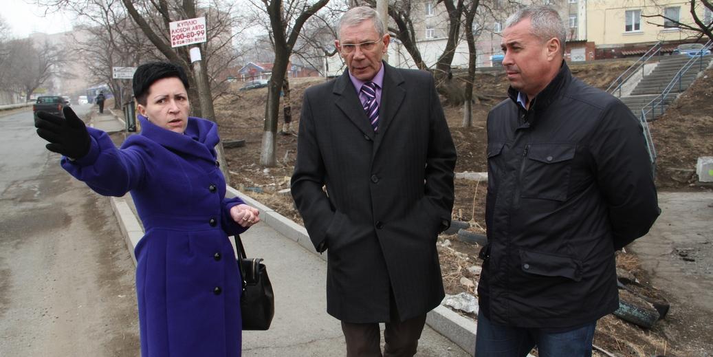 Юрий Корсаков: «Продолжается реализация проекта «Безопасные дороги» в Приморье»![]() С наступлением положительных температур в Приморском крае активизировалась работа в рамках проекта «Безопасные дороги» партии «Единая Россия». Руководитель проекта в Приморье, депутат Законодательного собрания края, заместитель секретаря регионального отделения ЕР Юрий Корсаков провел выездное совещание во владивостокском районе Змеинка. Именно отсюда в адрес проекта «Безопасные дороги» поступает большое количество жалоб на плохие дорожные условия, на отсутствие дорожных знаков и на активность стритрейсеров. В начале рейда по Первомайскому району заместитель начальника управления дорог и благоустройства администрации Владивостока Максим Акульшин, руководитель проекта Юрий Корсаков и сотрудники ГИБДД встретились с жильцами дома по адресу Приморская, 1. По словам жителей, на дороге возле дома постоянно возникают аварийные ситуации с участием пешеходов, в том числе детей, перебегающих дорогу в неположенном месте. Было принято решение установить предупреждающий знак. Также жильцам было предложено провести общее собрание по вопросам сноса гаражей возле дороги и установке «лежачего полицейского».