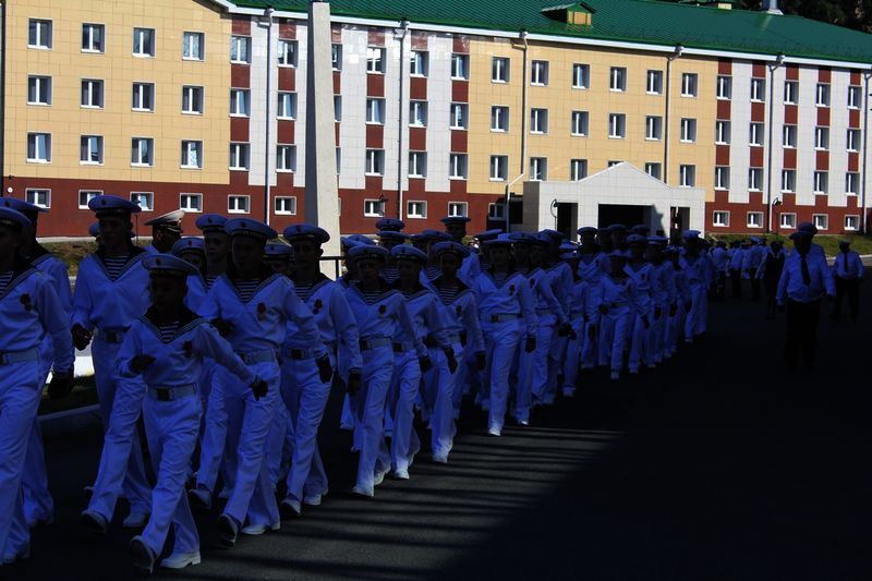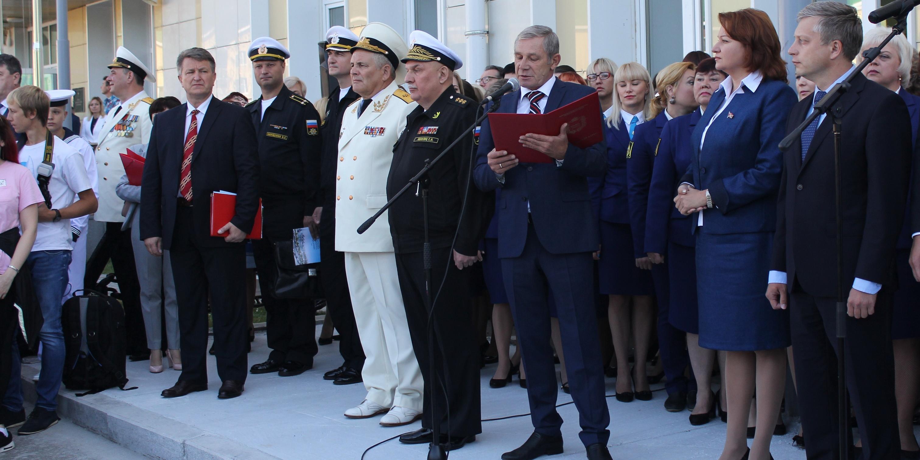 Юрий Корсаков отметил важность успехов кадетов в учебе и военной подготовке, высказал нахимовцам добрые слова напутствия, упомянул о важности поддерживать добрые традиции, сложившиеся в учебном заведении за десятилетия.