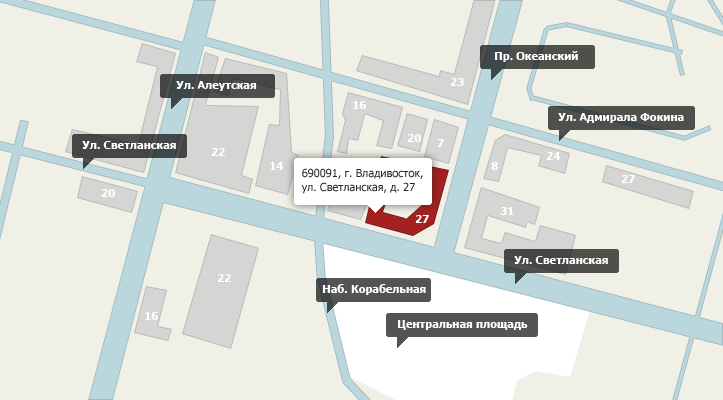 Адрес: 690091, г. Владивосток, ул. Светланская, д. 27. Схема проезда